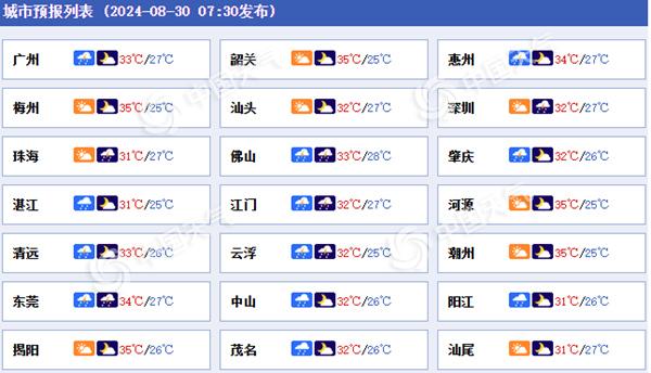 中國天氣網訊 廣東未來三天(8月30日至9月1日)仍有雷雨天氣,珠江三角洲等地局部有大雨或暴雨,公眾請注意防雷避雨。同時,高溫天氣逐漸增多,局地最高氣溫可達37°C,大家請注意防暑降溫。